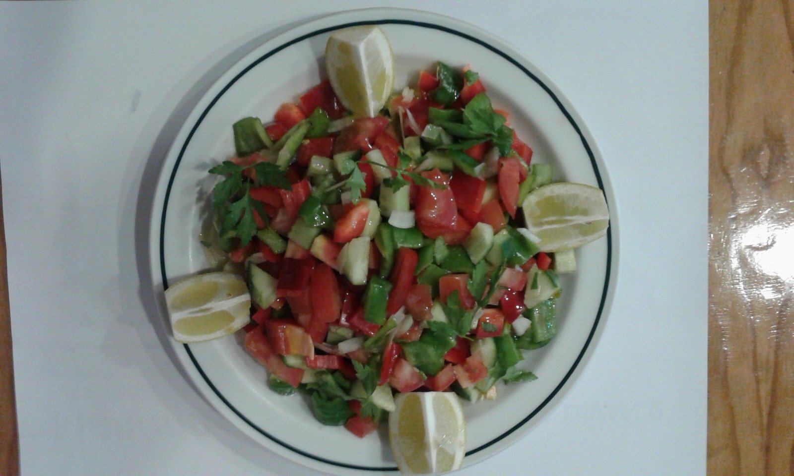 Tomate, pepino, pimiento y cebolla aliñada con limón y A.V.O.E.